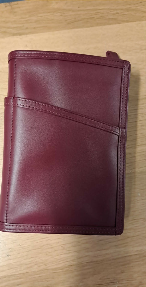 Bíbliuumslag - bordeaux, kálvaskinn stødd 12,5 x 18 cm